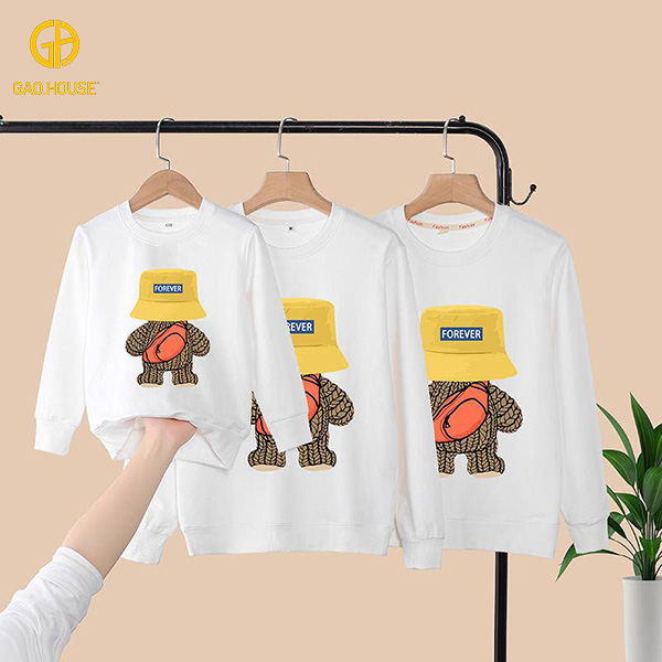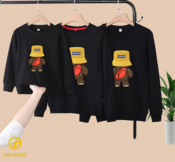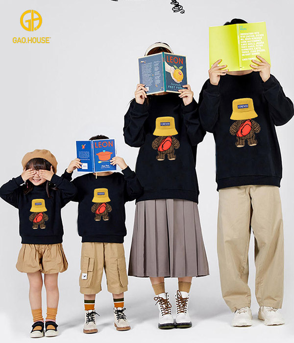 - Kiểu dáng: Áo hoodie gia đình có mũ, may đo vừa vặn với từng dáng người
