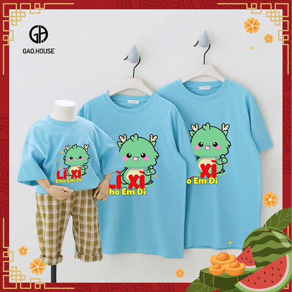 Áo Tết thiết kế GAT45 là một trong những phong cách đẹp và bán chạy hàng đầu của Gạo House. Sản phẩm được may đo, thiết kế theo yêu cầu, hình in trước ngực được thiết kế bởi đội ngũ Desinger tài năng, đảm bảo sẽ mang đến chất riêng cho tất cả các thành viên trong gia đình. Năm nay, màu xanh dương đảm bảo sẽ là trend nên gia đình mình nhất định không nên bỏ qua nhé.