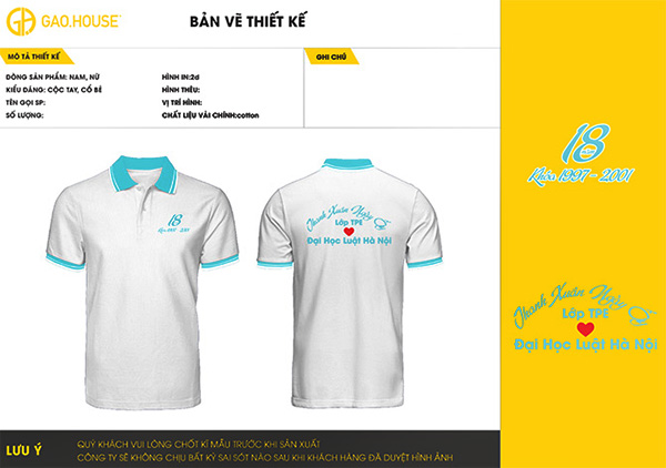 Mẫu đồng phục họp lớp sau 18 năm gợi lại bao ký ức đáng nhớ về thanh xuân, tuổi trẻ của các bạn lớp TPE ở ngôi trường Đại Học Luật Hà Nội. Chọn dáng áo polo chín chắn với màu trắng thanh lịch mang đến vẻ ngoài trẻ trung, năng động mà không kém phần chỉn chu, lịch sự. Mẫu GUH1980032 là một trong những gợi ý tuyêt vời giúp bạn tìm được một mẫu áo đồng phục phù hợp cho lớp mình.